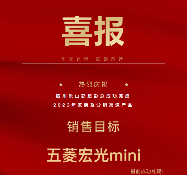 渠道布局是一個長久積累的過程,基于對家裝及分銷渠道的精耕細作,彭總勇于開拓,積極進取,成功實現(xiàn)今年第一季度就完成銷量目標!并提前兌現(xiàn)五菱宏光mini獎勵!早完成,早兌現(xiàn)!