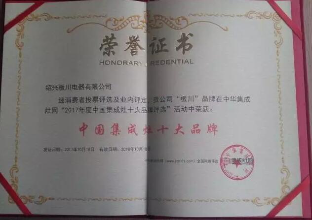 由中華集成灶網舉辦經由全國網友票選,最終板川安全集成灶以高票當選“中國集成灶十大品牌”。