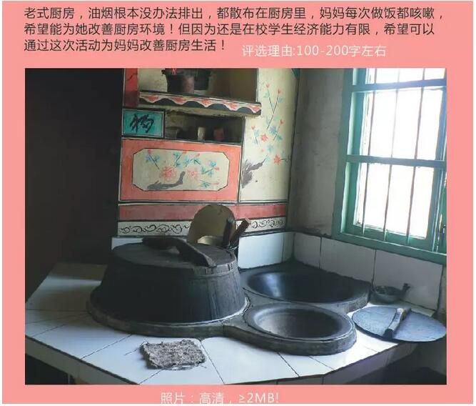 投稿要求:參與者需提供≥2MB的老廚房照片、100-200字左右的更換理由、個人姓名、電話、地址。