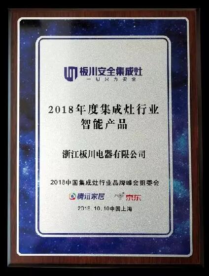板川安全集成灶榮獲——2018年度集成灶行業智能產品!